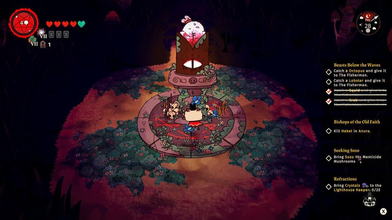 In the game, players control a lamb who is sacrificed by four heretic prophets. The lamb is then resurrected by a malevolent deity named “The One Who Waits” and instructed to start a cult in his honour.